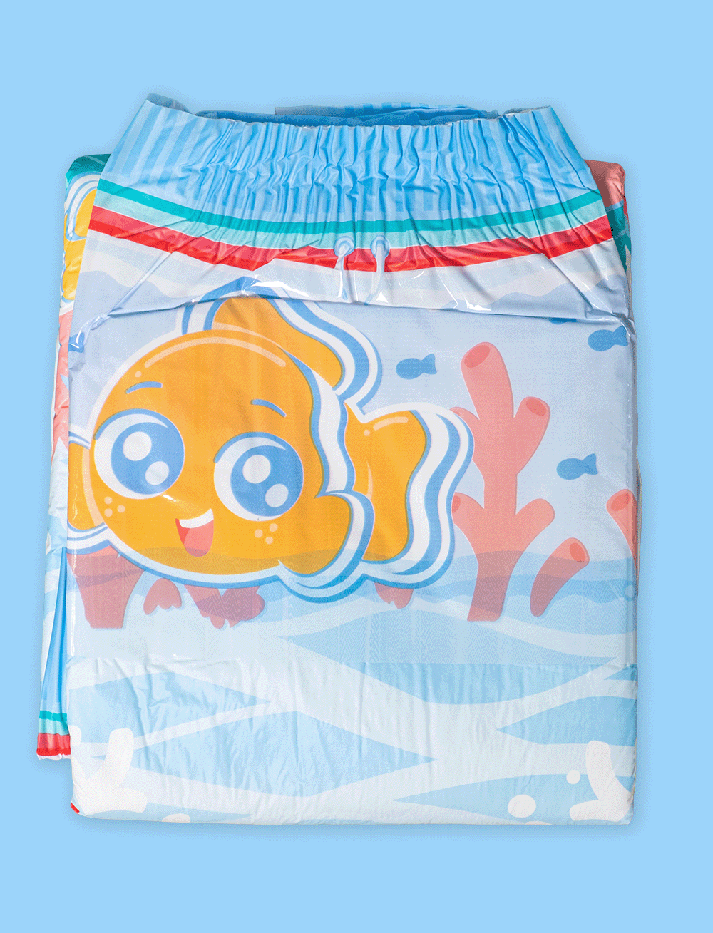 Featuring a soft, fully plastic backsheet and vibrant ocean-themed prints, including adorable crabs and fish, these diapers are perfect for anyone seeking reliable protection with a splash of fun. With a snug fit and reinforced tapes, Sea Friends ensure comfort and confidence, whether you're on an adventure or relaxing at home. Embrace the waves of comfort today!